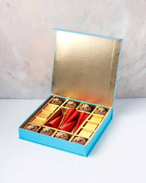 هديتك تحتوي على: • 4 كونز صغير من شوكولاتة الحليب • 8 حبات أوريو مغطاة بالشوكولاتة • 6 شوكولاتة حليب بلجيكية متنوعة • وزن الشوكولاتة: 400 جرام • النكهات: البندق، سبيكولوس وروش • حجم الصندوق: 25×25×4.5 سم المناولة والتخزين • الابتعاد عن الحرارة المباشرة وأشعة الشمس • يفضل تخزينه في درجة حرارة تتراوح بين 12-18 درجة مئوية • غير مناسب للنباتيين • غير مناسب لمن لديهم حساسية من البذور والمكسرات ومنتجات الألبان والبيض يحتوي على المكسرات والمنتجات القائمة على المكسرات