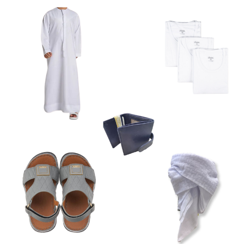 هدية العيد الرائعة للأطفال: غترة وكندورة وصندل وفانيلا قطن اصلي