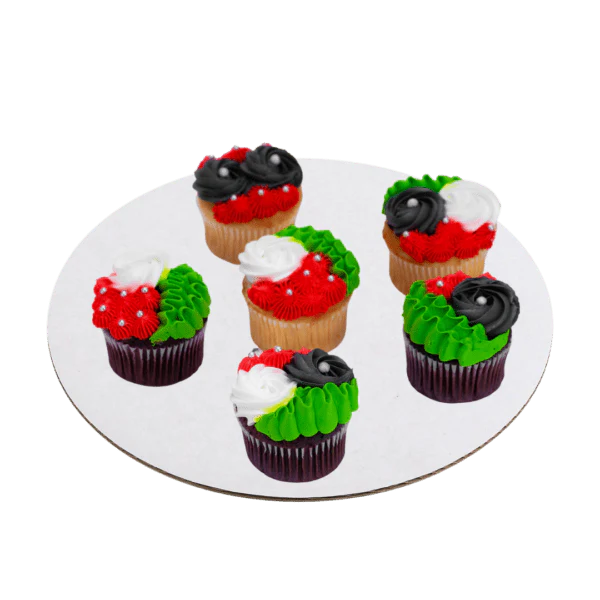 دعونا نحتفل بيوم العلم الإماراتي واليوم الوطني مع الكعك اللذيذ الخاص بنا. مجموعة من 6 كب كيك.