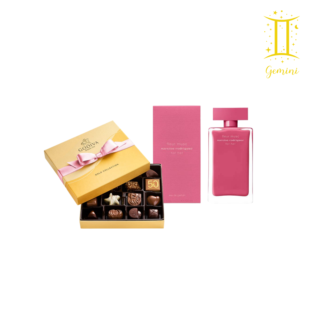 مواليد برج الجوزاء الذين ولدوا في 21 مايو - 20 يونيو ، قدم هدية لأحبائك على هدايا زودياك الخاصة بنا - تحتوي هدية برج الجوزاء للنساء ؛ علبة شوكولا مع علبة عطر ، من نيجوا.