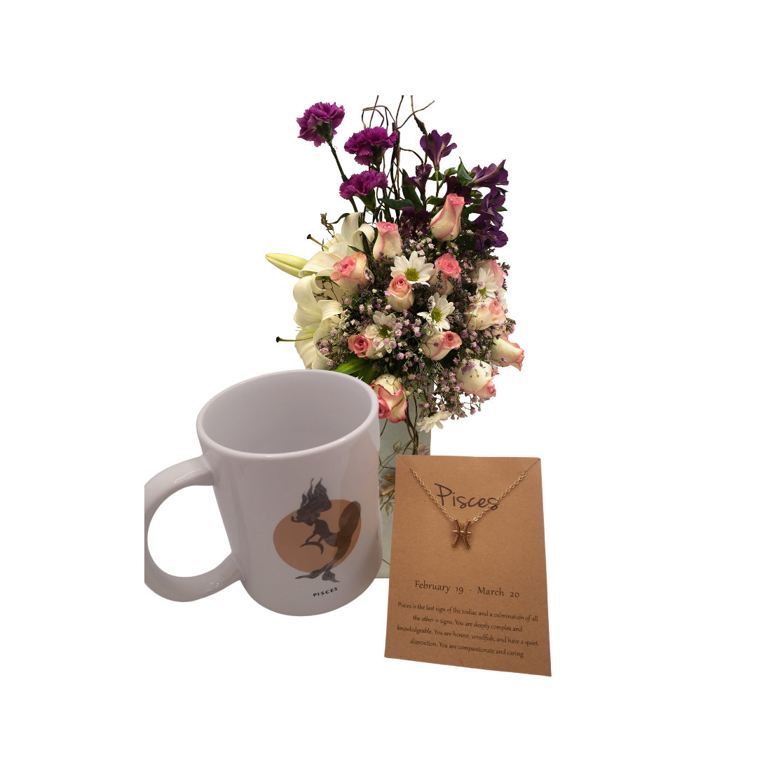 قدم لأحبائك مجموعة برجك مع سلسلة أكواب برج الحوت الأنيقة والأنيقة مع قلادة برج الحوت مع باقة من