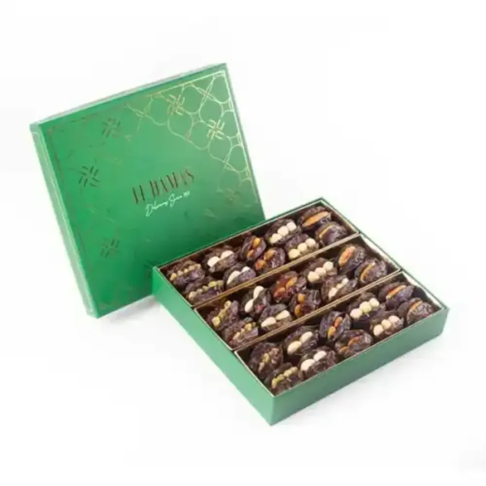 تشكيلة رائعة من التمور المحشوة الممتازة، محضرة بعناية مع أجواء رمضانية أصيلة.