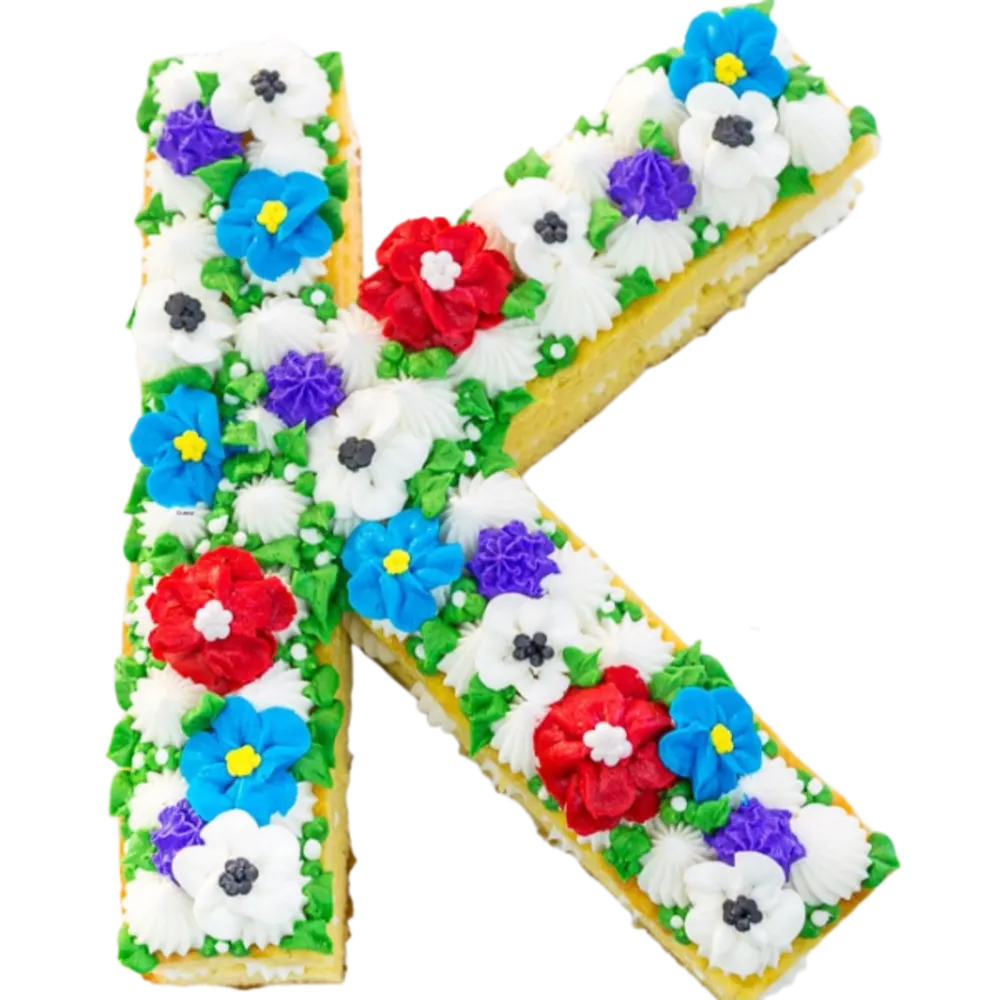 كيك مصمم على شكل حرف بالنكهة والإضافات المفضلة لديكم