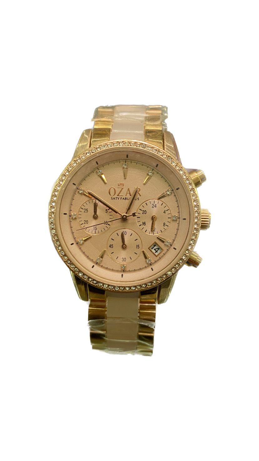 ساعة موزارو ذهبية بحزام معدن وضمان ٣ سنين