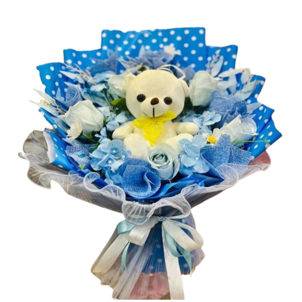 باقة المولود ورد صناعي مع دمية