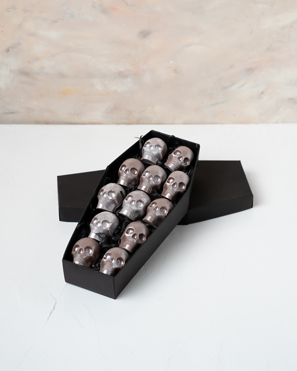 "هديتك تحتوي على: •12 شوكولاتة حليب جمجمة بلجيكية • وزن الشوكولاتة: 180 جرام • النكهات: فستق، بندق، سبيكولوس، زبدة الفول السوداني وروش • حجم الصندوق: 10×22×35 سم المناولة والتخزين • الابتعاد عن الحرارة المباشرة وأشعة الشمس • يفضل تخزينه في درجة حرارة تتراوح بين 12-18 درجة مئوية • مناسب للنباتيين • غير مناسب لمن لديهم حساسية من البذور والمكسرات ومنتجات الألبان يحتوي على المكسرات والمنتجات القائمة على المكسرات"