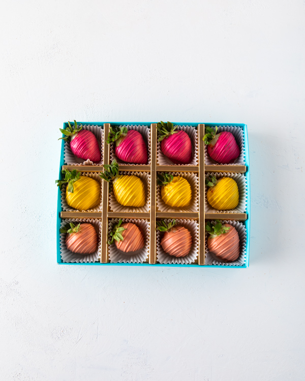 تحتوي هديتك على: 12 قطعة من الفراولة الربيعية مغطاة بالشوكولاتة الوردية والأصفر والبرتقالي حجم الصندوق: 24x18x3.5 سم المناولة والتخزين يحفظ بعيدًا عن الحرارة وأشعة الشمس المباشرة جميع منتجاتنا مصنوعة حسب الطلب ونقترح تخزينها في مكان بارد وجاف مناسب للنباتيين مُعد في منشأة تستخدم فيها المكسرات