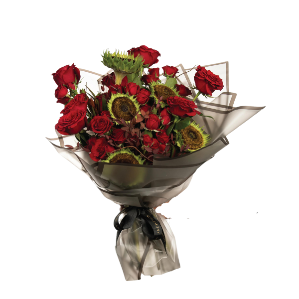 تشكل الورود الحمراء وعباد الشمس تباينًا جميلاً وترمز إلى الحب والفرح. هذا المزيج من شأنه أن يشكل باقة زفاف جميلة أو باقة هدايا عيد الأم. الحجم الصغير :٣٠ قطعه الحجم الوسط : ٤٠ قطعه الحجم الكبير : ٥٠ قطعه