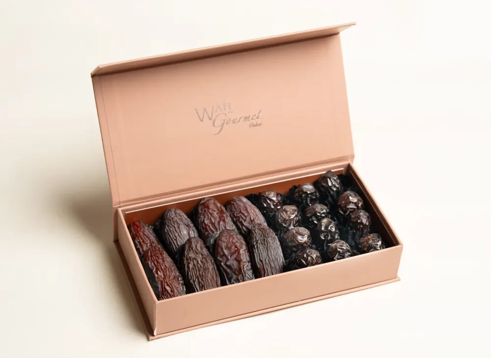 علبة هدايا مغناطيسية من تمور مجدول وعجوة منزوعة النوى من WG، مقاس صغير/كبير