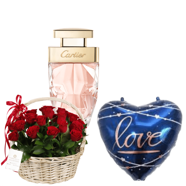 Anniversary Gifts perfumes with flowers and ballon