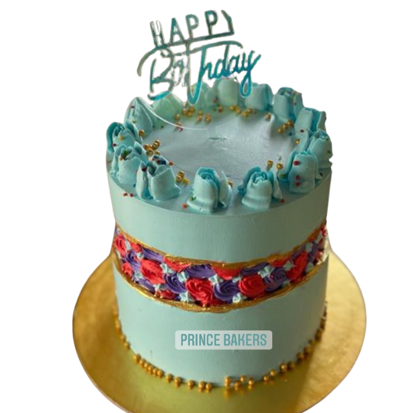 Blue cream cake with roses 1 kg