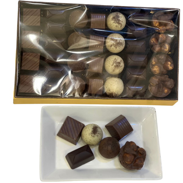 383g The most luxurious types of chocolate: black chocolate, white chocolate, Aleppo chocolate, chocolate stuffed with nuts, and chocolate stuffed with hazelnuts.