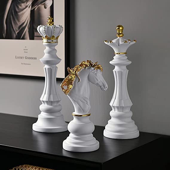 Dubai Decoration - Set of 3pcs King Queen Knight Chess Statue Home Decor Accents for Office Bookshelf Desktop Table Wine Cabinet Gift