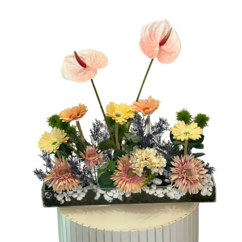 flower basket with special flowers and stones