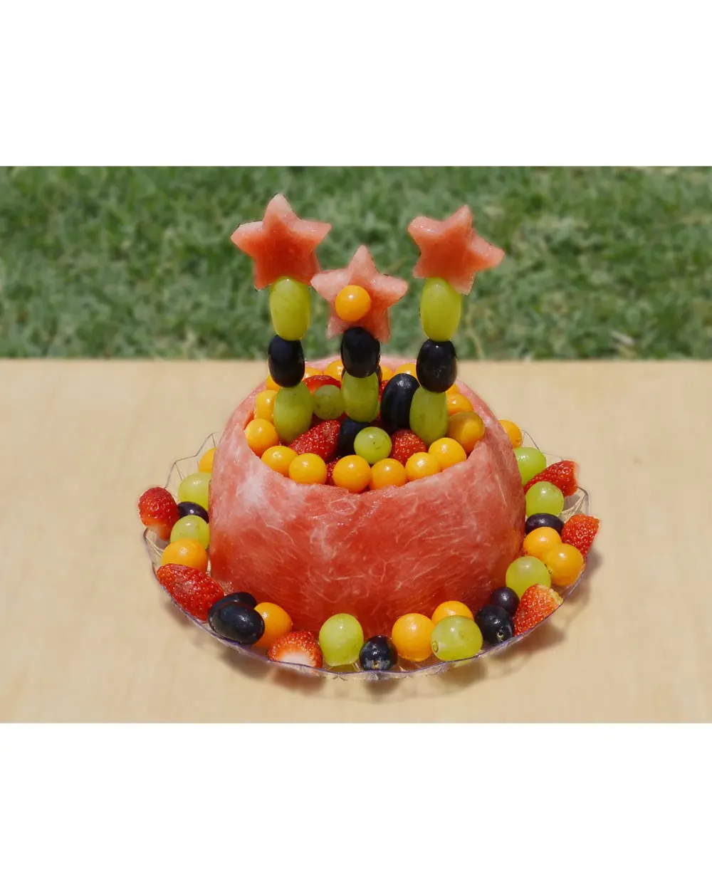 Watermelon cake made only with heathy fresh fruits. With a cake that’s just made of fresh, juicy watermelon, strawberries, grapes, golden berries – you can never have too much of it. A perfect Vegan Cake 4-6 servings.