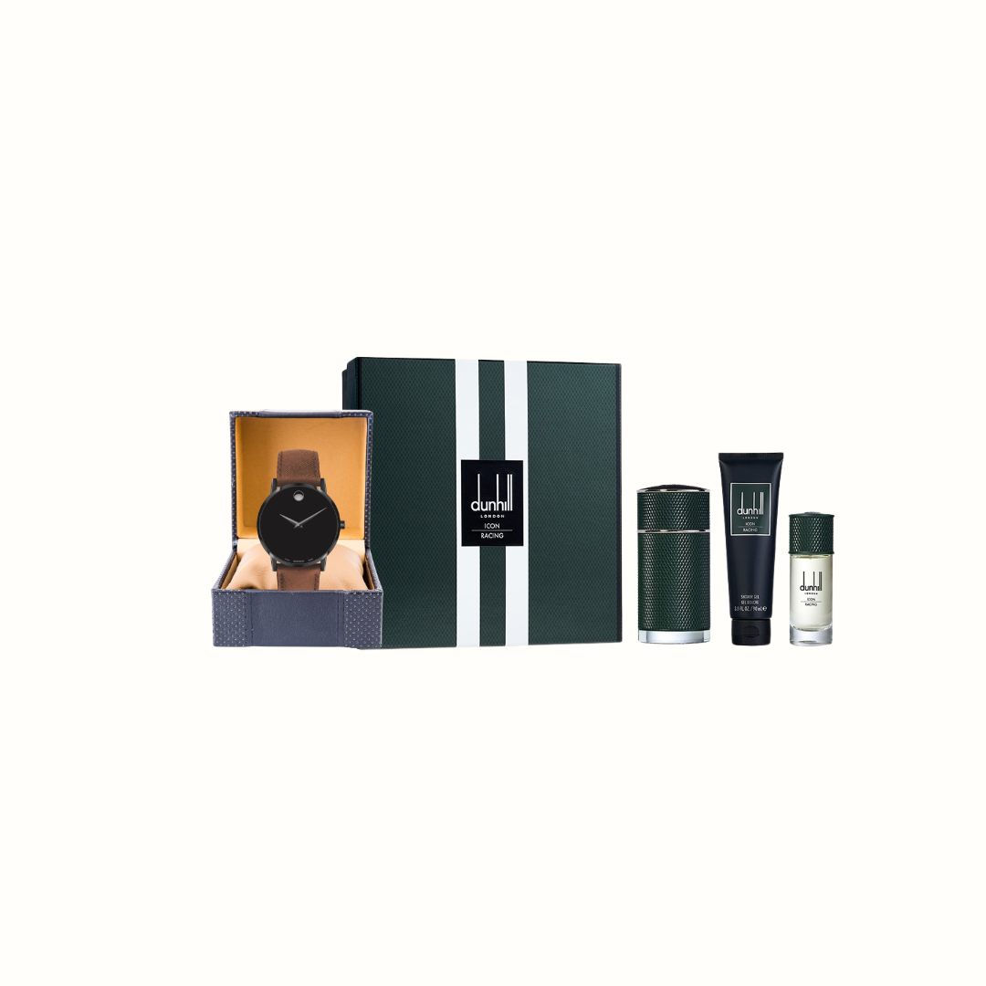 This package contains; Original Dunhill perfume and grooming set, Original movado brown watch. Perfect for gifting.