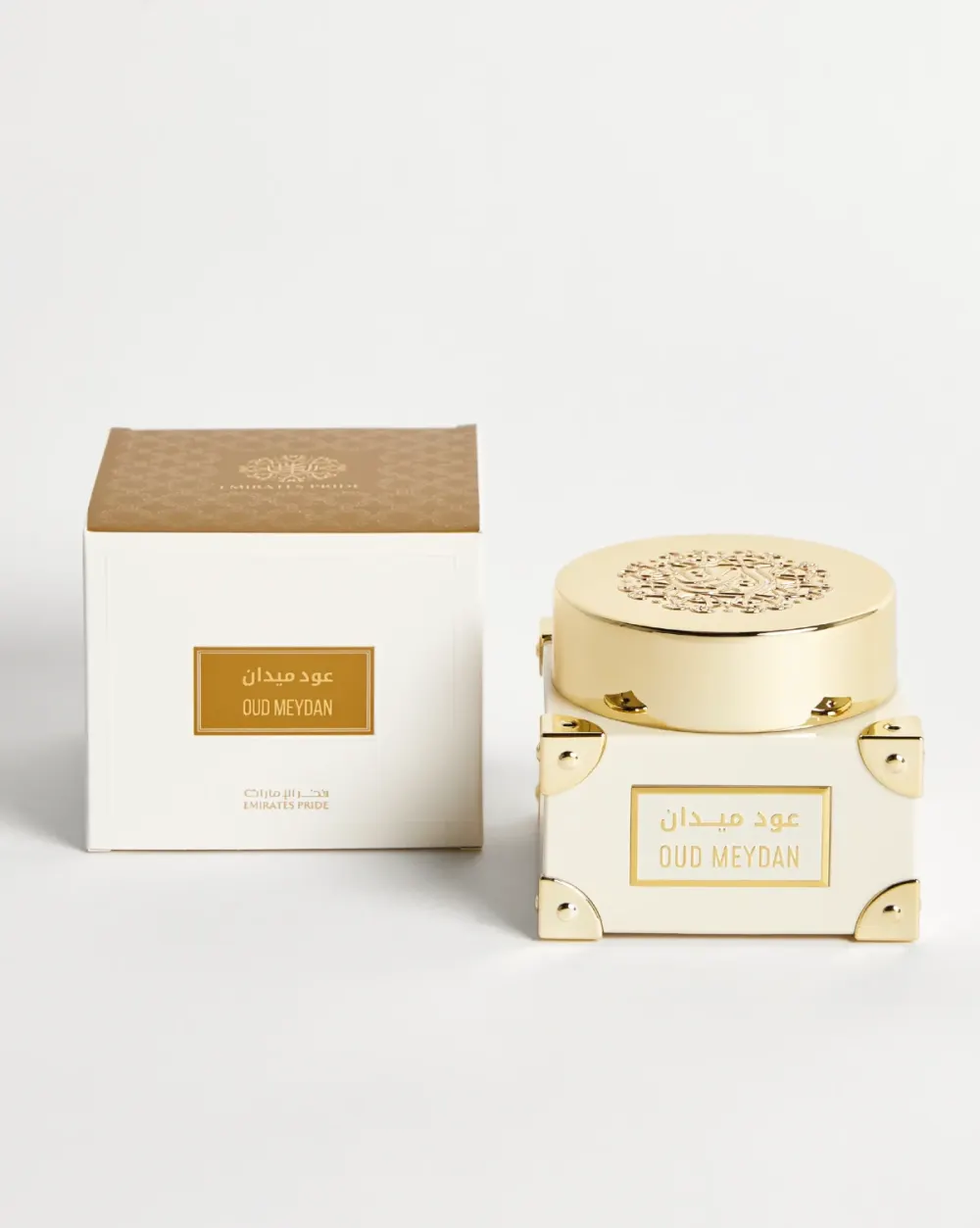 An aromatic splash starts with the zesty and citrusy note of Bergamot, accompanied by the rich floral notes of Bulgarian Rose and a woody touch of Leather. Sophisticated and Captivating, Oud Meydan reveals all your inner beauty in a sparkling and natural elixir. Ingredients Bergamot, Bulgarian Rose & Leather Weight 3.5 Tola (35 g)