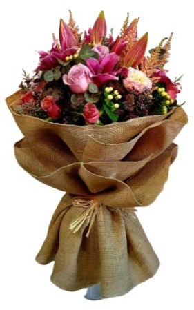 Name : Pink Lilies Mix Bouquet Description: Fresh Pink Lilies, Roses and Astilbe Flowers, Greeneries