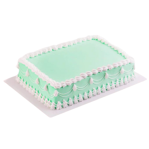 A stunning sheet cake with Lambeth-inspired border piping. This cake serves a large group of up to 20 people. Also comes in blue.1.5kg