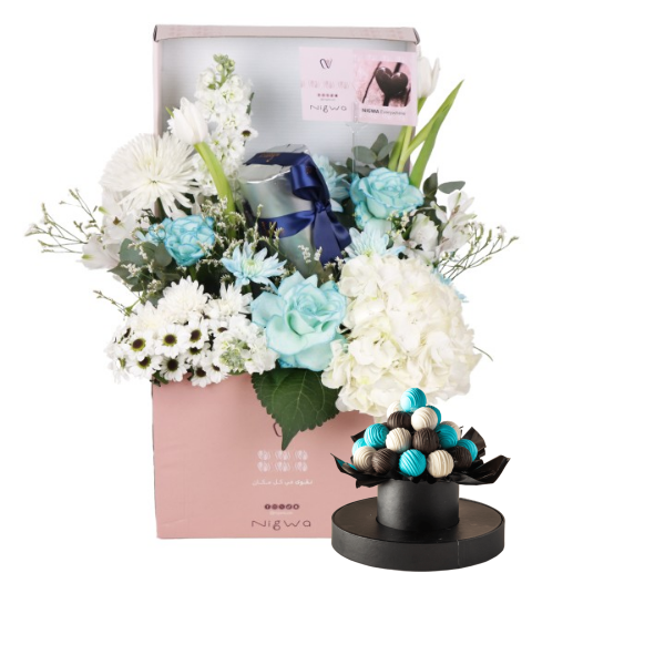 Enhance any occasion with NJD sweets and flower boxes from Nigwa This elegant arrangement combines the finest confectionery from NJD with a beautifully designed flower box. Perfect, this gift brings joy and elegance to any setting. Available for same-day delivery at Cavo across the UAE, Nigwa ensures that your gifts arrive fresh and on time. Choose nigwa to meet all your flower and gift delivery needs in the UAE.